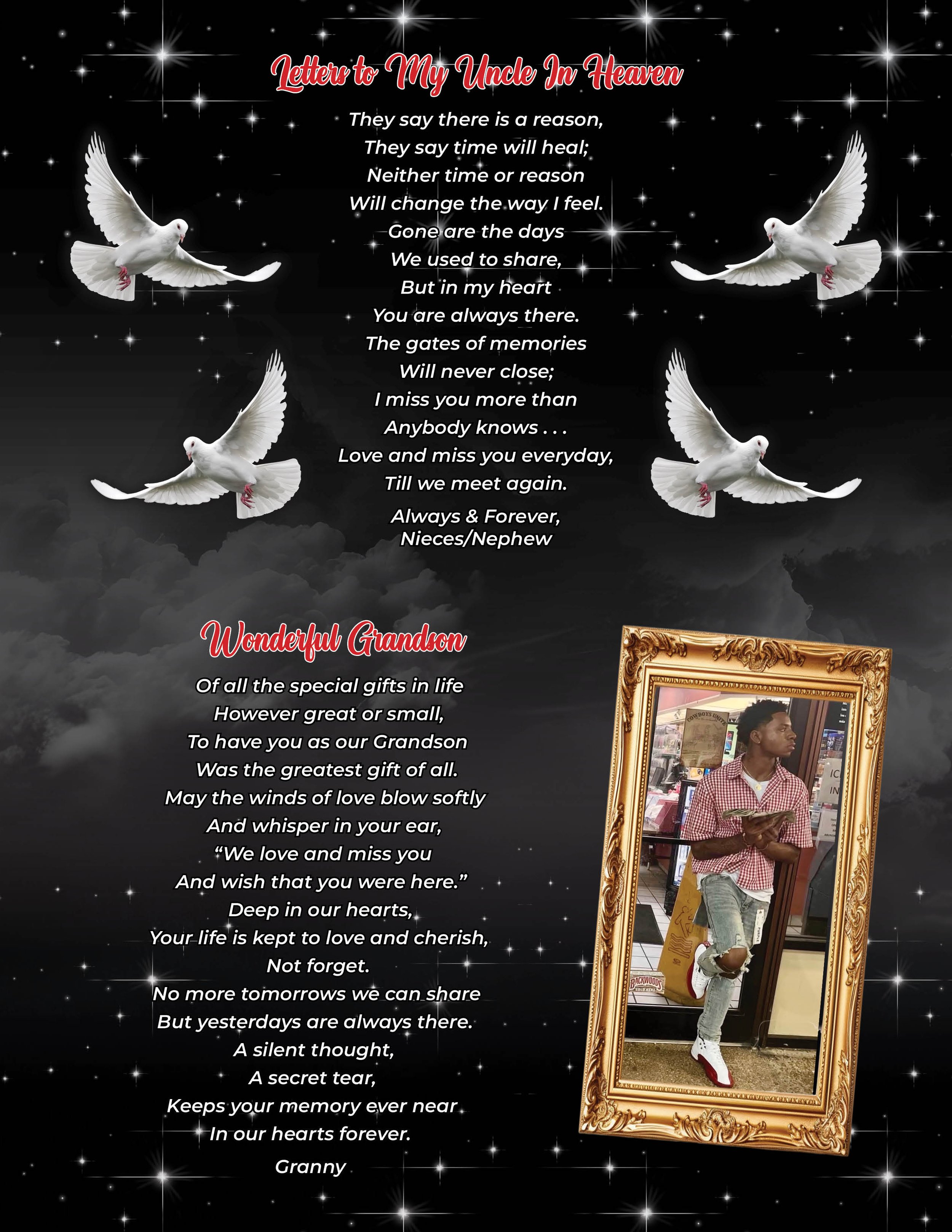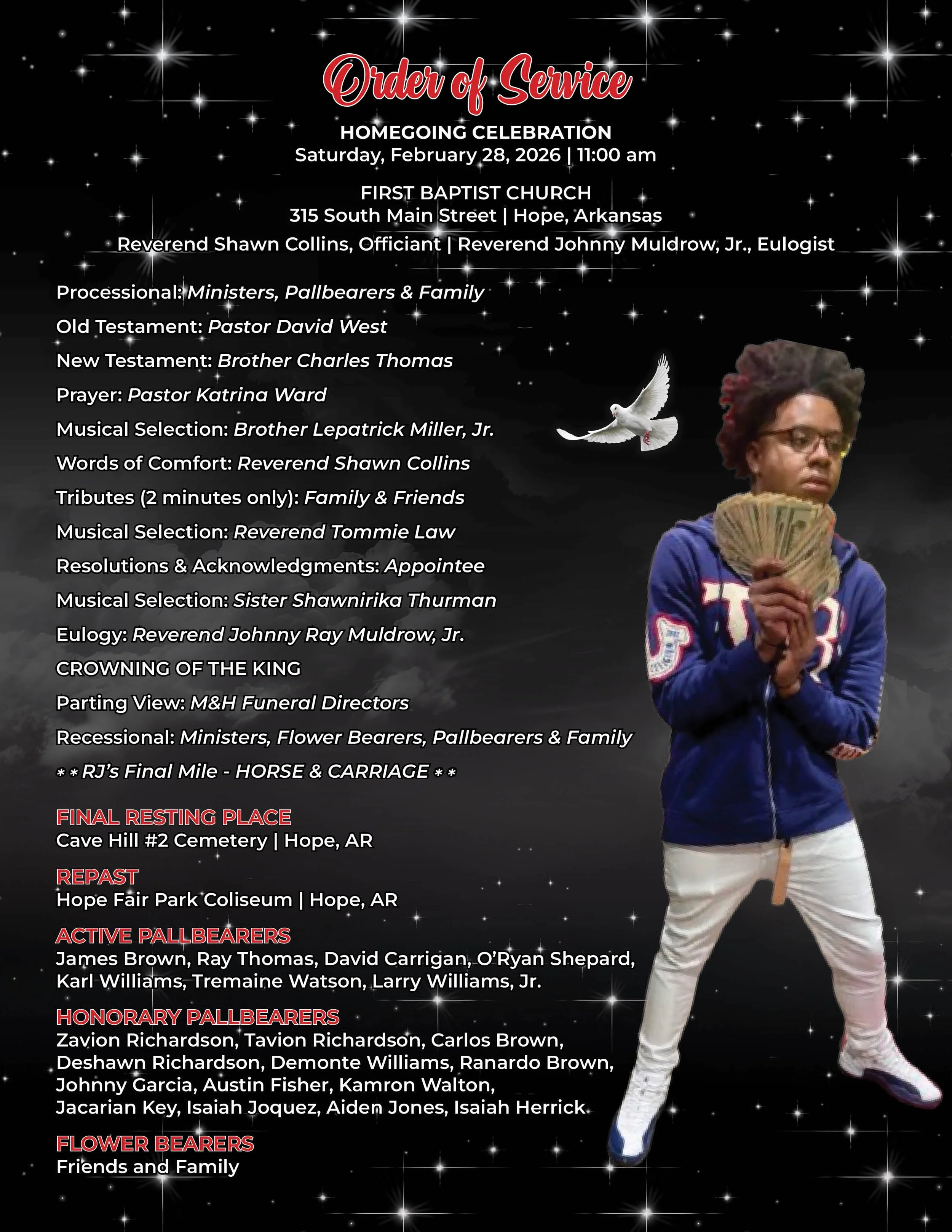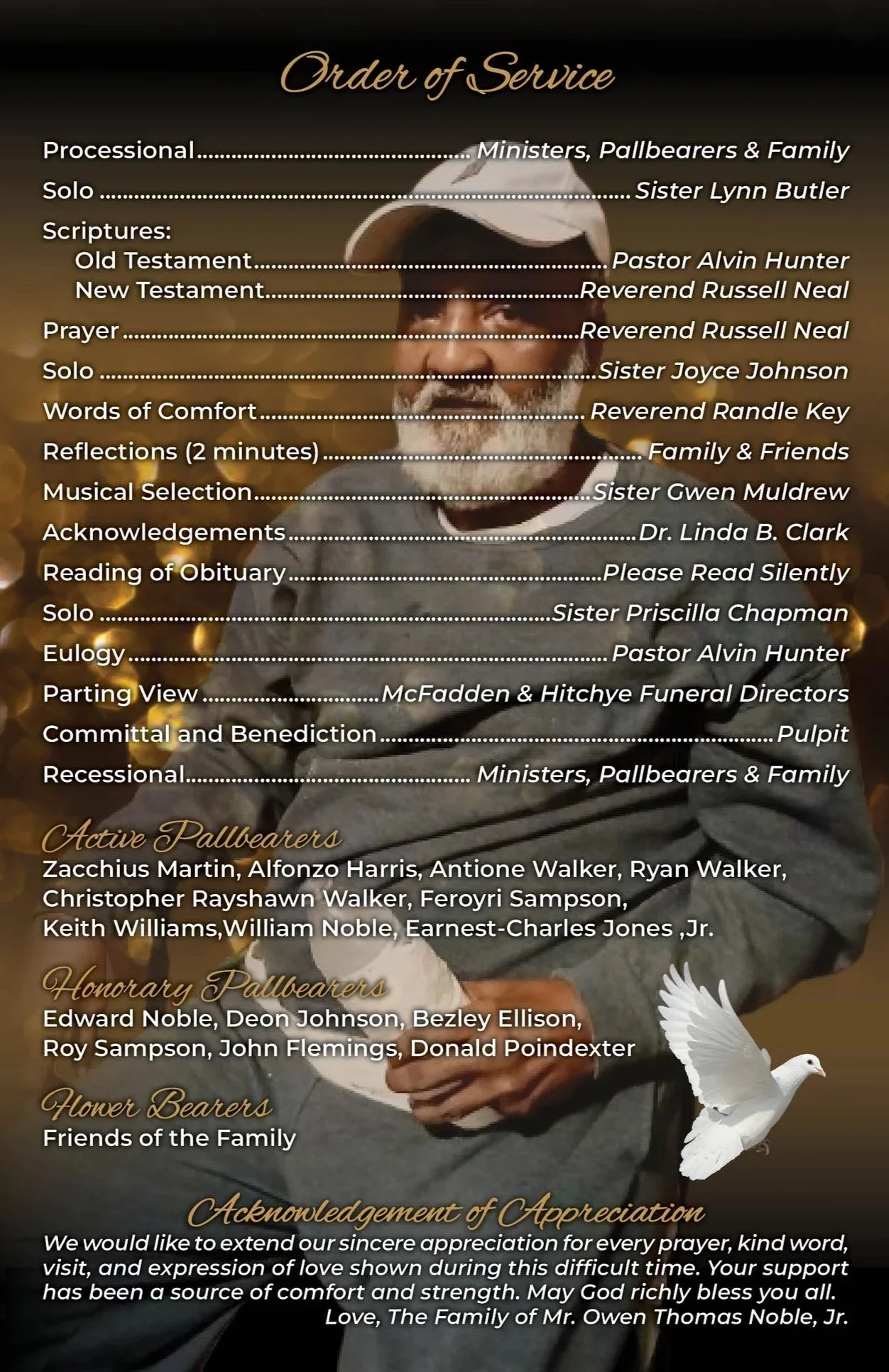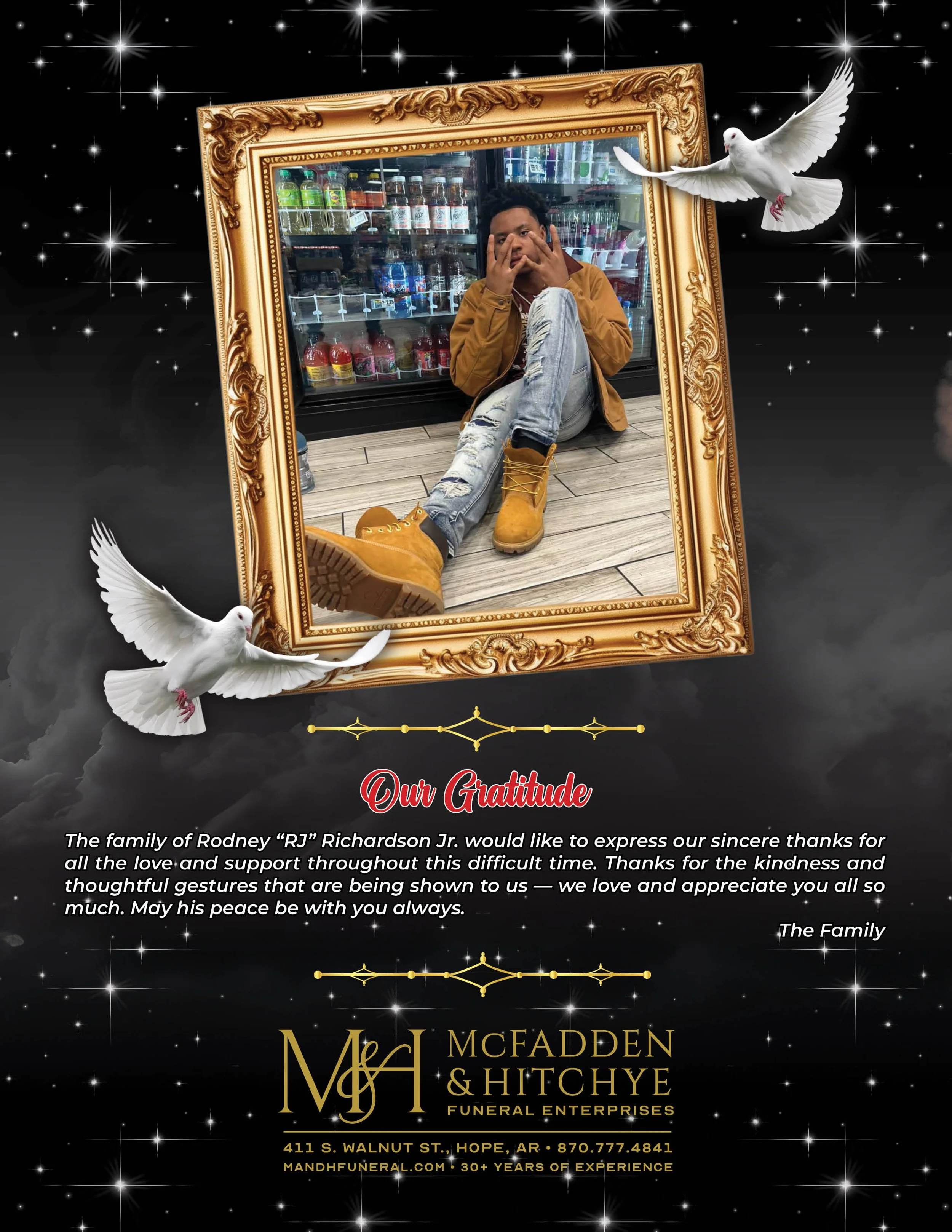 Watch and show your support at McFadden & Hitchye Funeral Enterprises or YouTube (https://www.youtube.com/channel/UCYivdhqz8YMnPq-QGJD8clw).