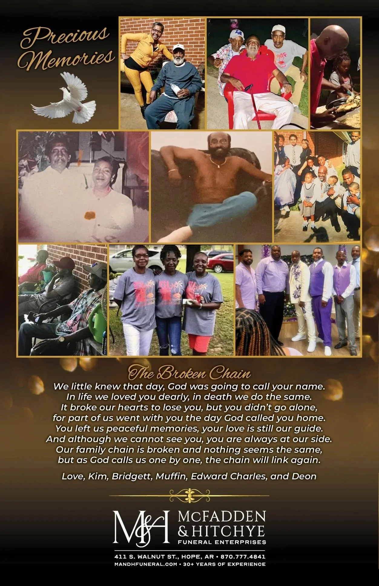 Charley W. Hill, age 75, a native of Hope, Arkansas, transitioned into eternal life on December 21, 2025, at his residence in Bellefontaine Neighbors, Missouri, with family by his side. May he rest in peace. He will be laid to rest at Sunset Gardens Cemetery in Nashville, AR, on January 26, 2026, at 12:00 p.m.