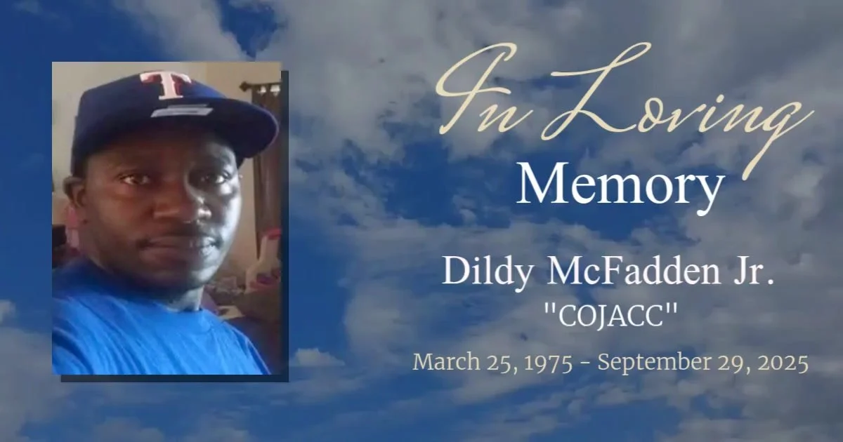 Dildy Lee McFadden, Jr., affectionately known as โCojaccโ or โTone,โ was born on March 25, 1975, in Washington, Arkansas, to Janet Ruth Poindexter Munn and stepfather Willie Munn. His sunrise began there, and on September 29, 2025, his sunset came peacefullyโsurrounded by his loving family, knowing he had completed his heavenly mission.