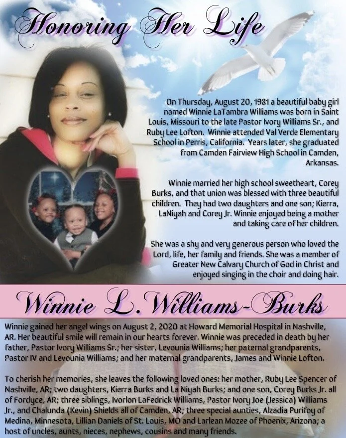 **Homegoing service will begin at 11 am | Friday, July 17, 2020 @ Cave Hill Cemetery, 400 S. Hazel, Hope, AR | Rev. Steve Jackson - Eulogist