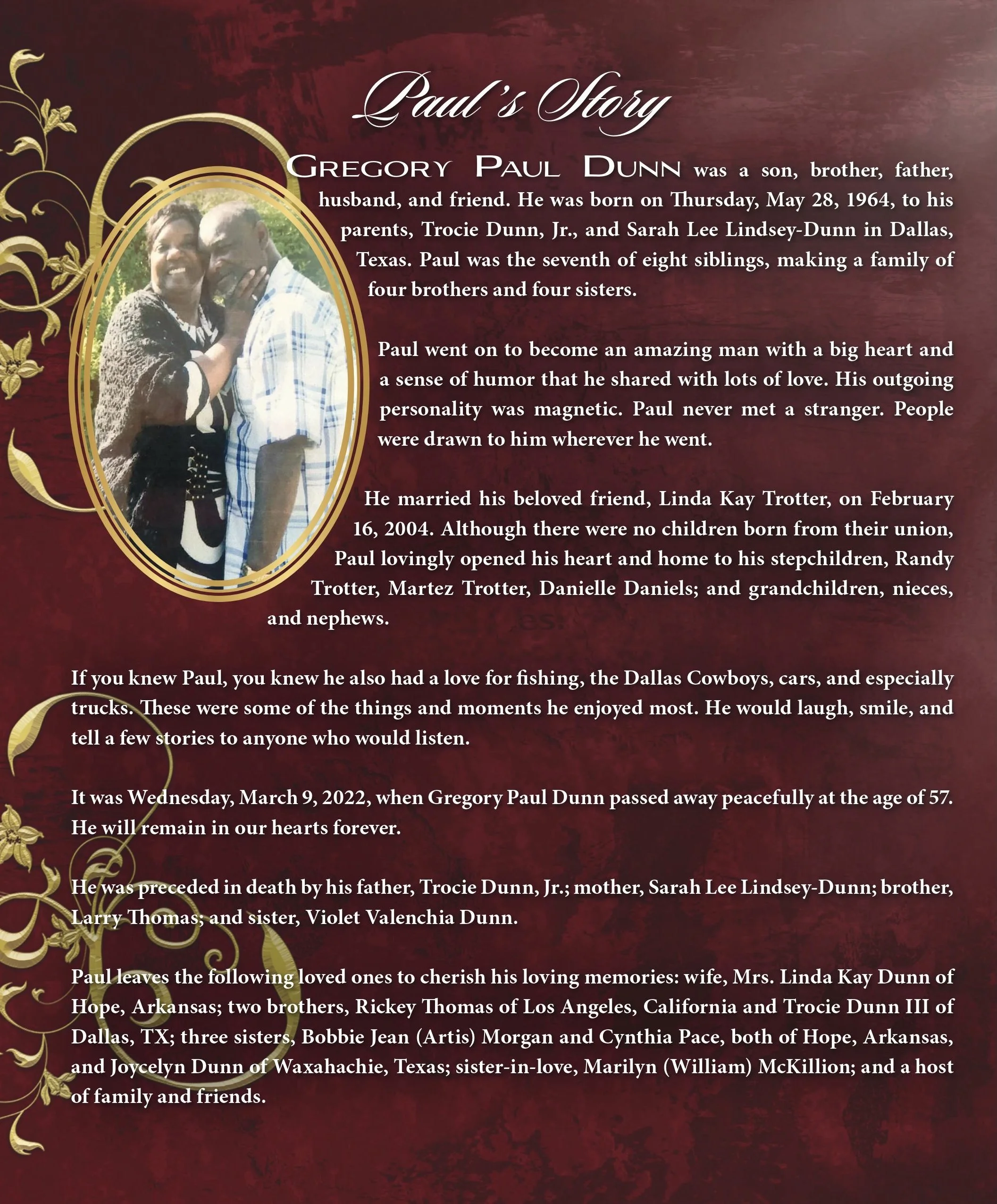 It was Monday, May 30, 2022 when God called Lloyd to his heavenly home at the age of 69 in Texarkana, Texas. He will remain in our hearts forever. He was preceded in death by his parents, Willie Hopson and George Gulley Sr.; four brothers, Willie James Gulley, George Gulley Jr., Lee Momon and William Momon.